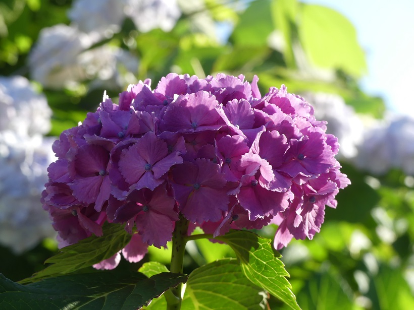 帰りもまた最初のアジサイのところを通る。行きは曇っていたけど、帰りは日差しが照りつけて、白がまぶしい。
